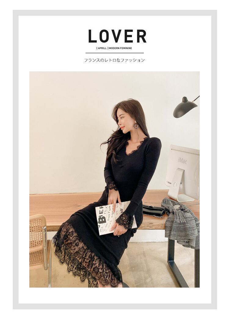 フランスのレトロなコート長い膝上セータードレススリムで薄いセクシーなパッケージヒップフィッシュテールニットドレス女性 ロング yingd89224074392
