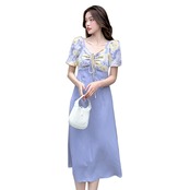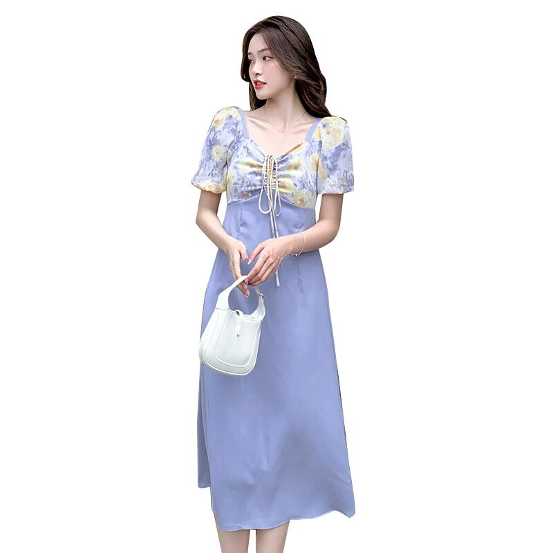 フランスのニッチな初恋ドレス、レトロな優しい風、ウエスト、細い気質、女神ファン、パフスリーブ花柄ドレス、夏 サマー 夏物 yingd30928407495