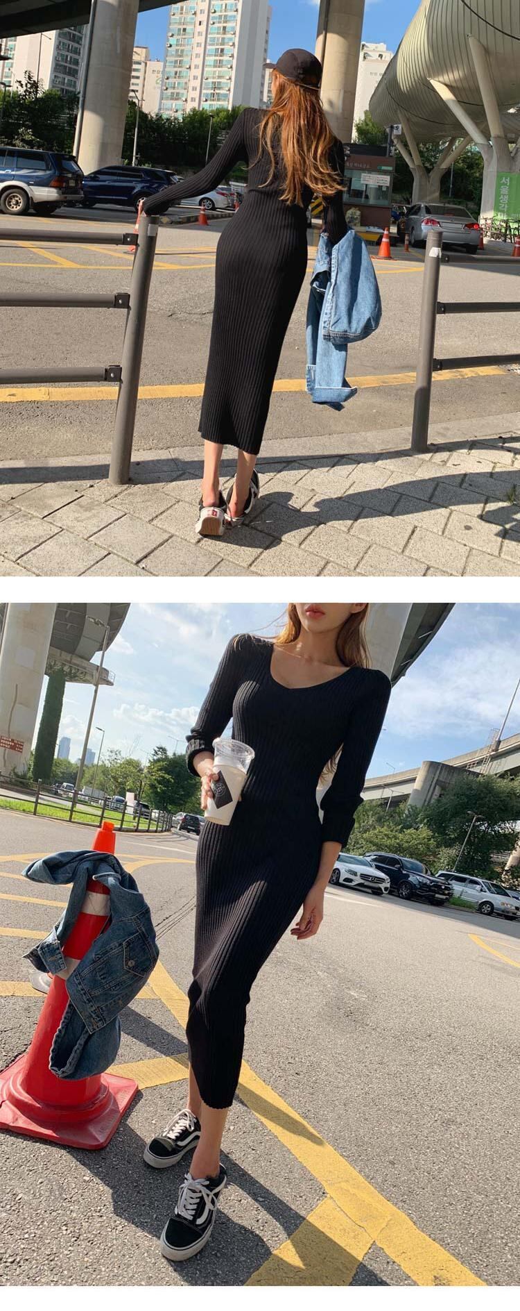 超ロング膝上セータードレススリムで薄い気質セクシーなVネックタイトフィットお尻ニットドレス女性のロングスカート yingd76052255752