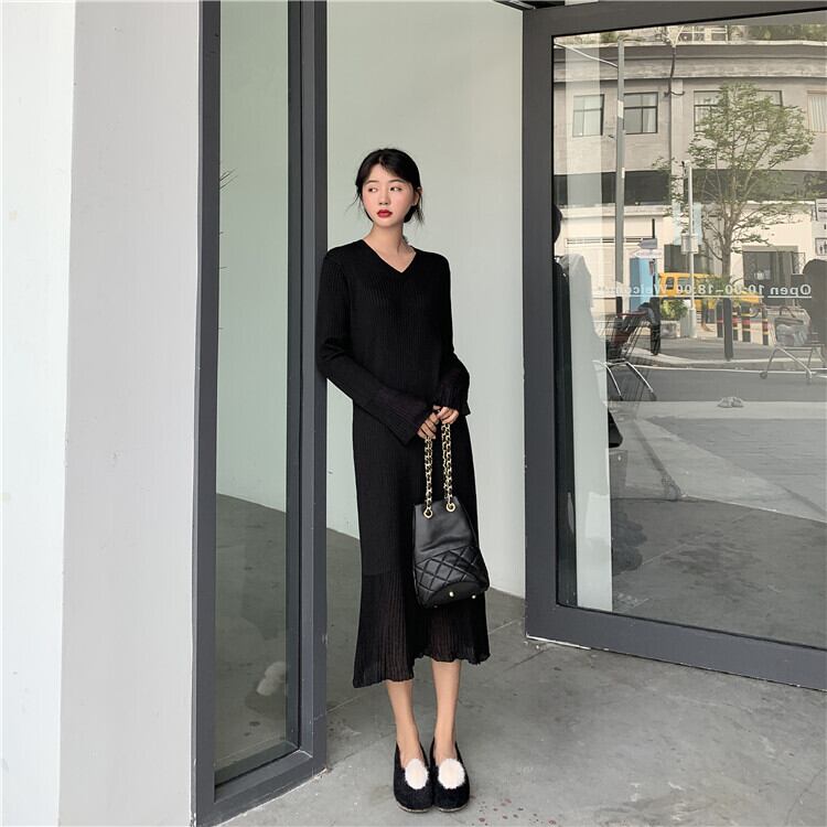 2020年秋の新作レディースミドル丈バージョン膝上ニットボトムスカート、ウエスト、薄手の気質のレディースドレス オータム 秋物 yingd75365899027