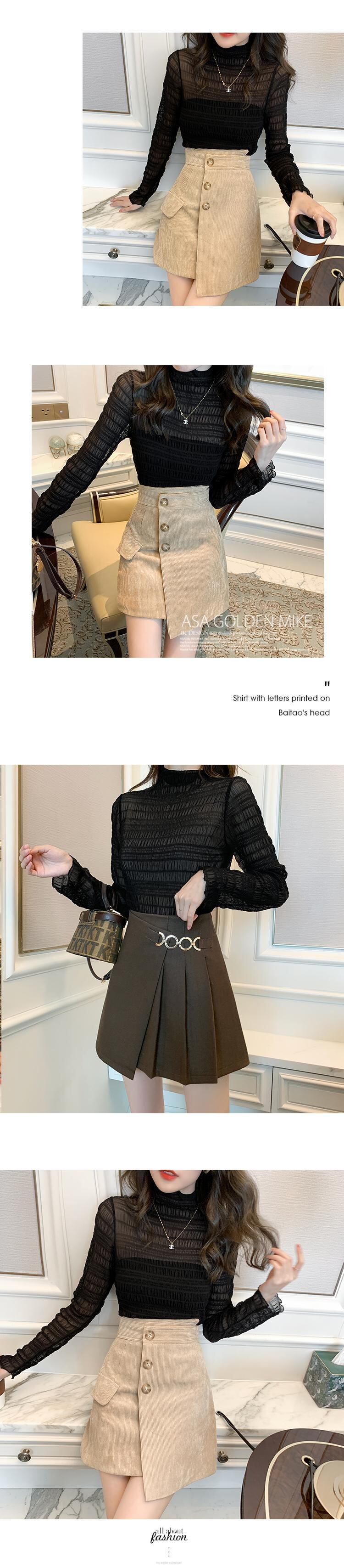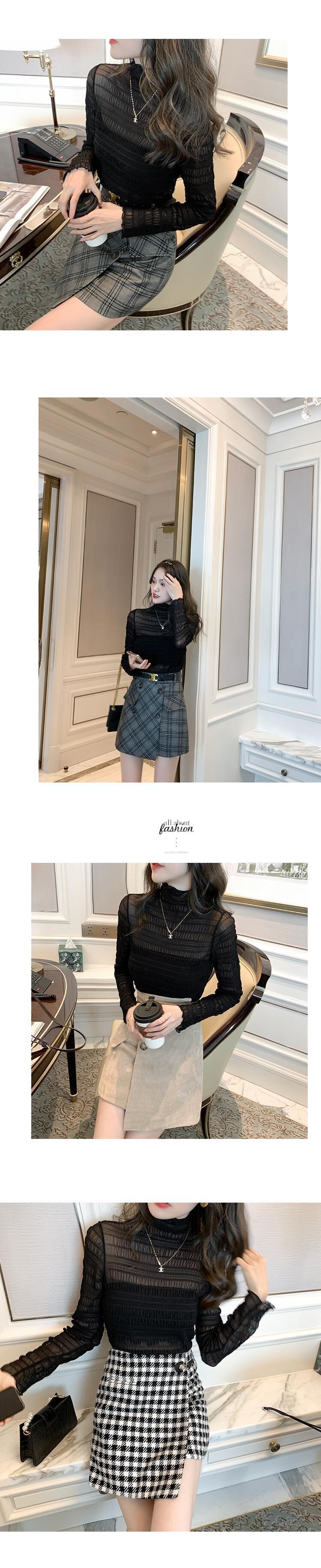 レディースボトミングシャツ秋冬新作レースメッシュハイネック長袖シフォンシャツトップスレディースインナーウェアエインスタイルリダクションシャツ ロング ウィンター 冬物 yingd35533011631