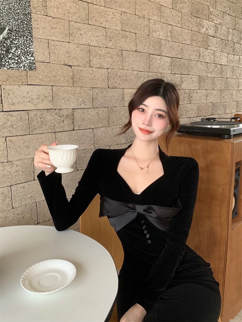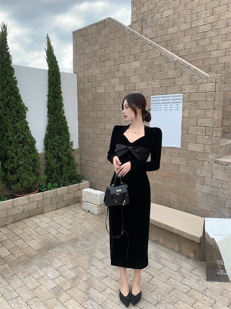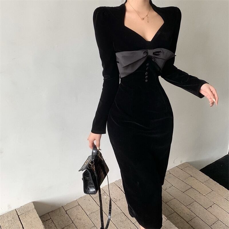 冬のスカート2021新しい女性のフランスのレトロなヘップバーンスタイルのスリムスリムセクシーなスプリットベルベットドレス秋と冬 オータム 秋物 ウィンター 冬物 yingd41688422847
