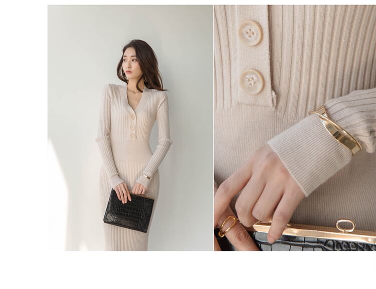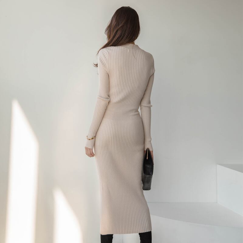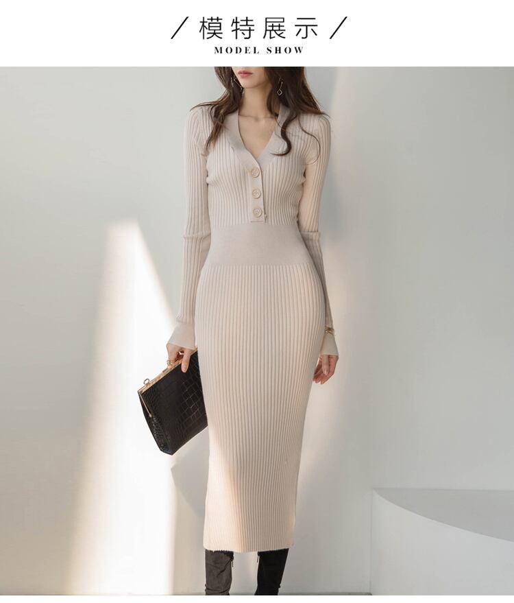 ニットのロングスカート、スリムな気質、セクシーなVネックの姉、軽い成熟したスタイルのセーター、ドレス、秋と冬の女性のコートを着ています オータム 秋物 ウィンター 冬物 yingd52724806574