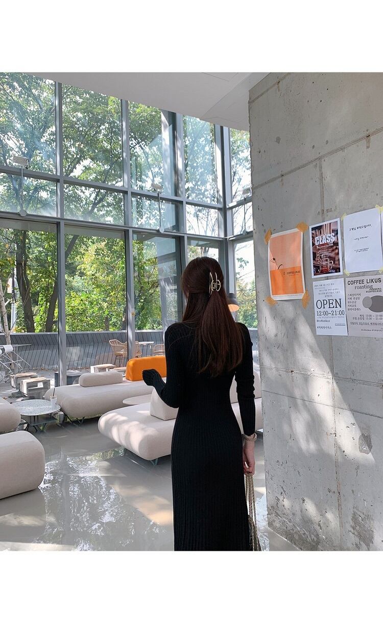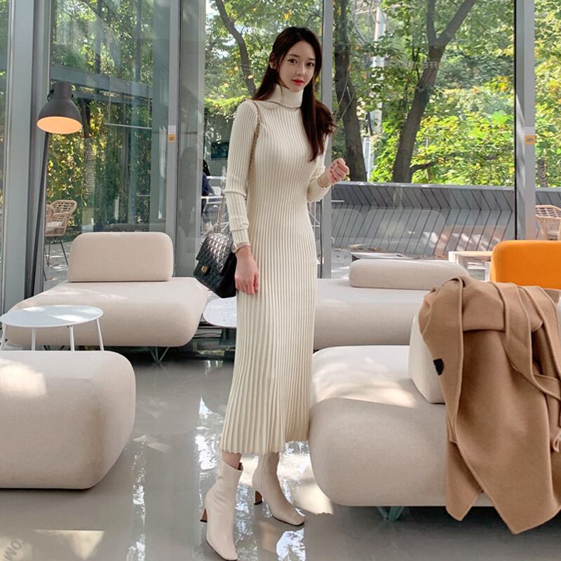 超ロング膝上セータードレススリムで薄い気質の女神ファンハイネックニットドレス秋冬女性 オータム 秋物 ウィンター 冬物 yingd14327444621