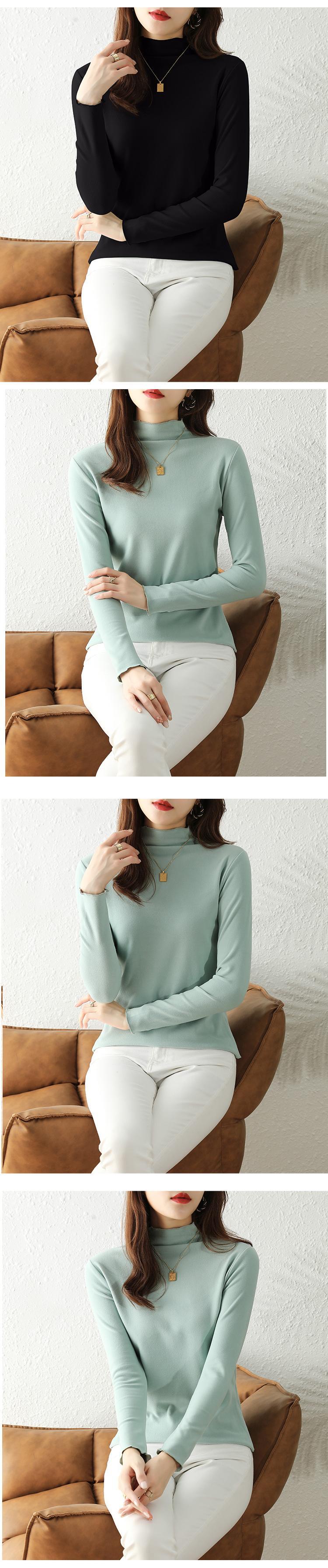 2021年の秋冬の女性用ボトミングシャツ新しいスリムで薄いハーフハイカラーの長袖プラスフリーストップTシャツ ロング オータム 秋物 ウィンター 冬物 yingd2521789445