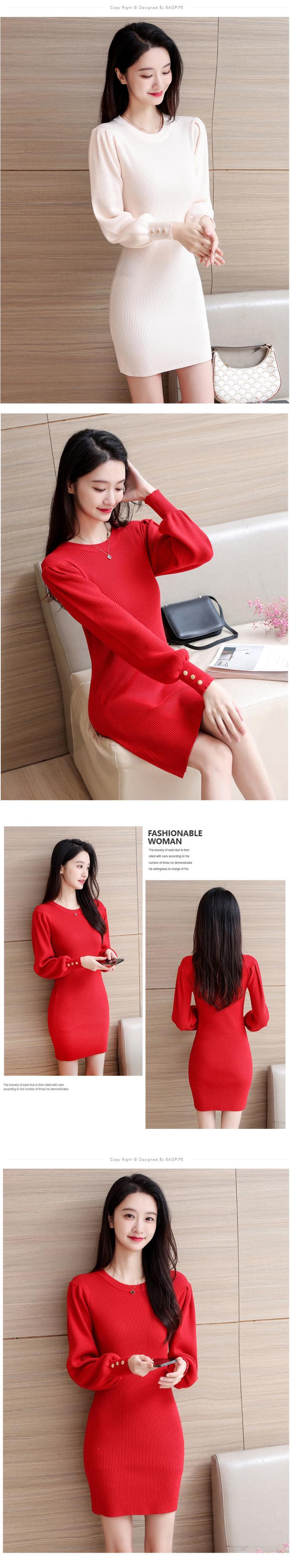 秋冬の新作ミドル丈セーターレディースウエストスリミングセクシータイトフィットヒップニットワンピースレディース オータム 秋物 ウィンター 冬物 yingd72711655357
