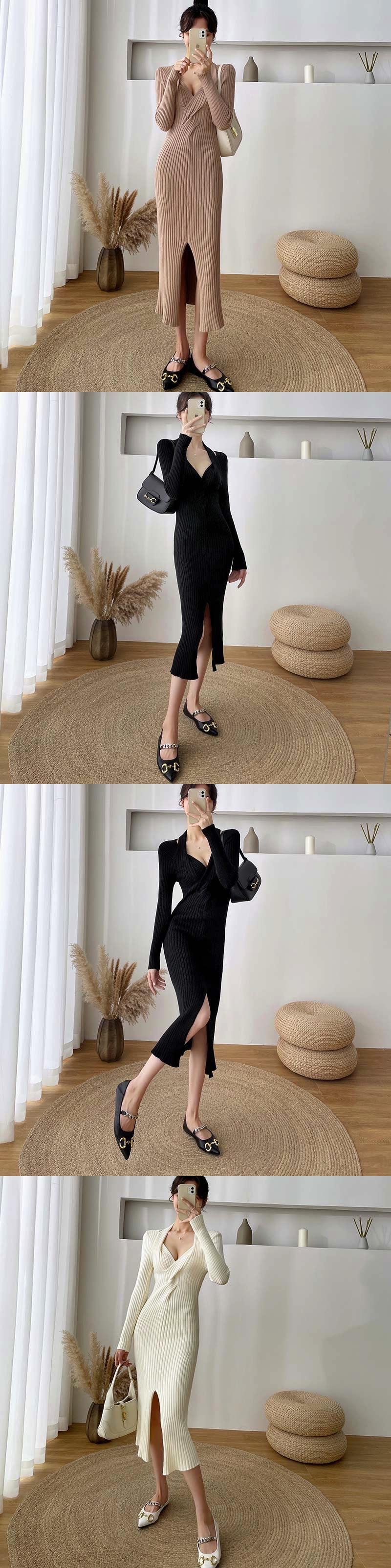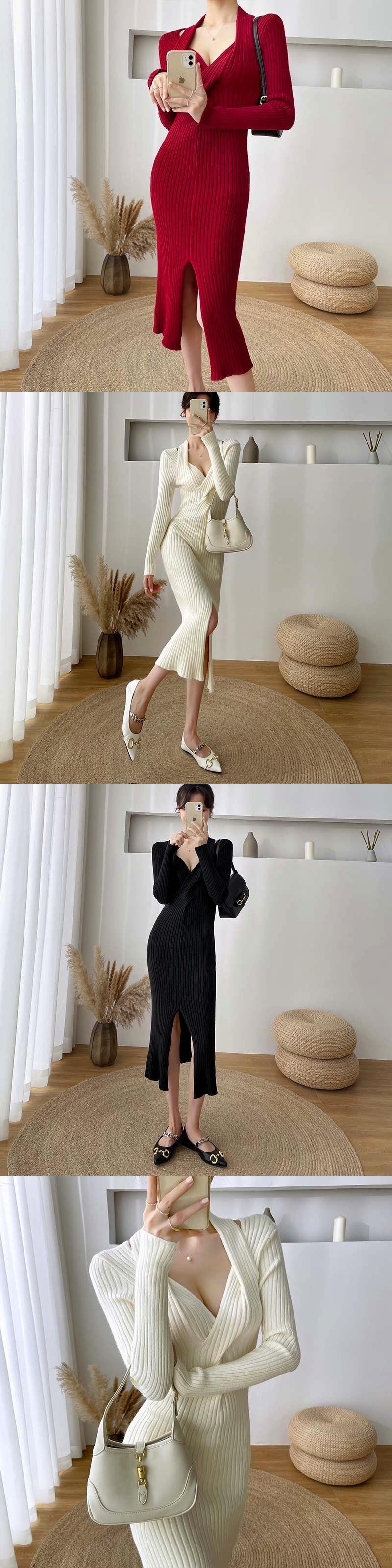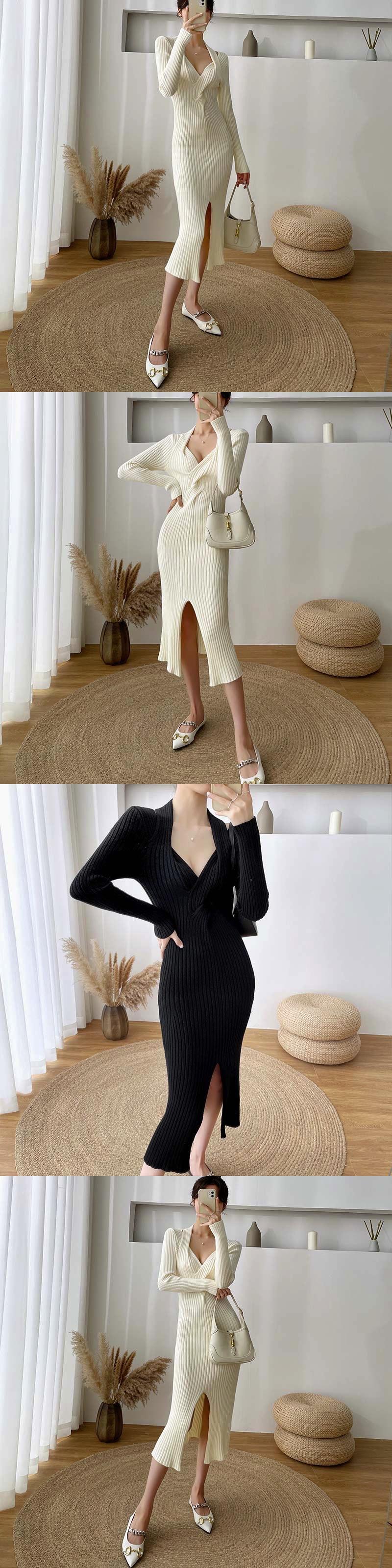 フランスのレトロシックなデザイン、ニッチ、細いウエスト、高いエレガンス感、スプリットニットセーター、ドレスの女性 yingd52215553667