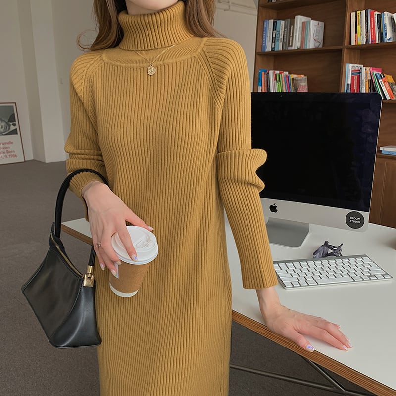 秋冬の太めのハイネックルーズ怠惰セータースカートは薄手の気質ロングバージョンオーバーザニーベースニットワンピース オータム 秋物 ウィンター 冬物 yingd18166118498