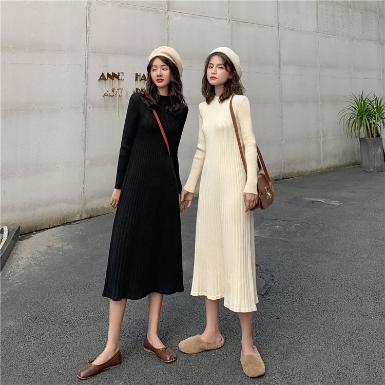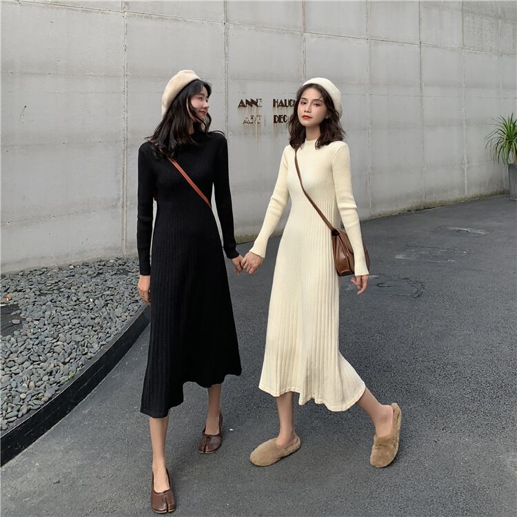 ウエストと細い気質のハーフタートルネックセーターレディースミドル丈バージョン、穏やかな風のニットドレス、コート付きの秋と冬 オータム 秋物 ウィンター 冬物 yingd71062699510