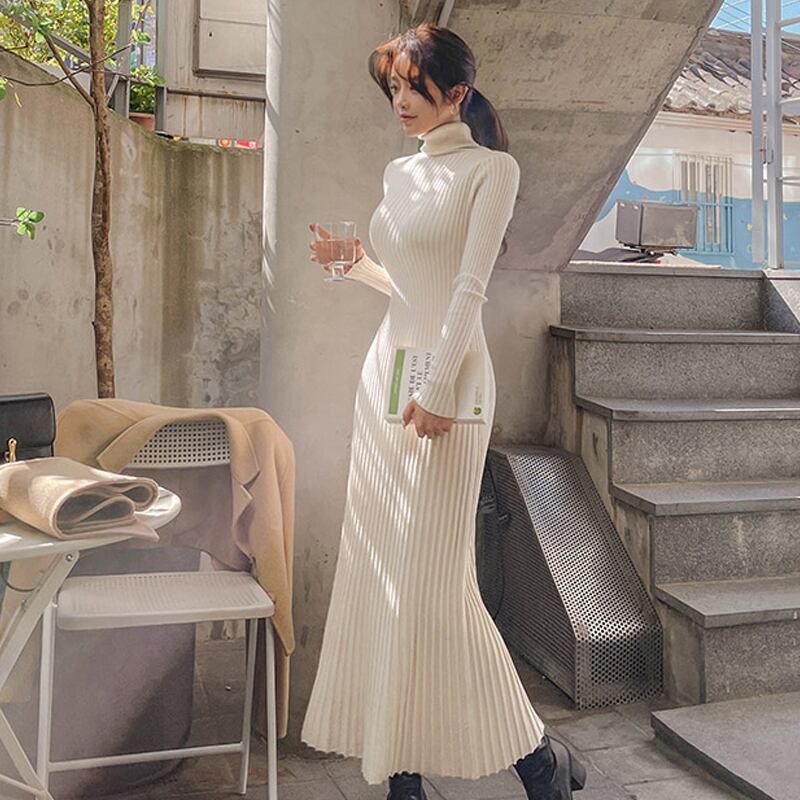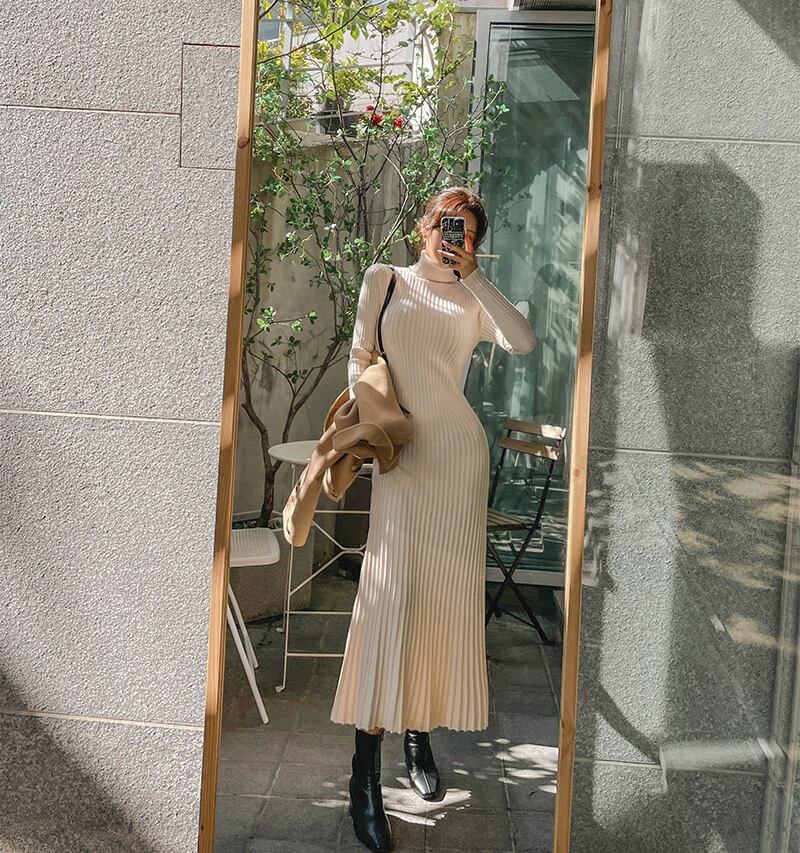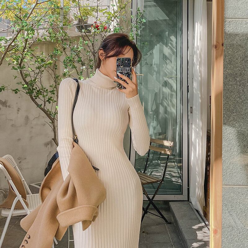 超ロング膝上セーターワンピーススリムスリミング気質優しい風ピュアな欲望ハイネックニットワンピース秋冬 オータム 秋物 ウィンター 冬物 yingd6189183949
