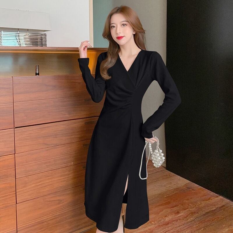 フランスのレトロなロイヤルシスター、軽い調理スタイル、シックなデザイン、スリムで薄い、セクシーなスプリットコーデュロイドレス秋と冬 オータム 秋物 ウィンター 冬物 yingd66570967807