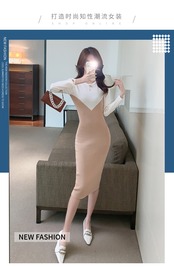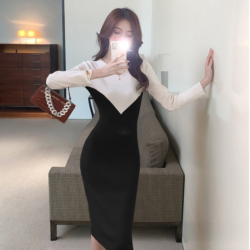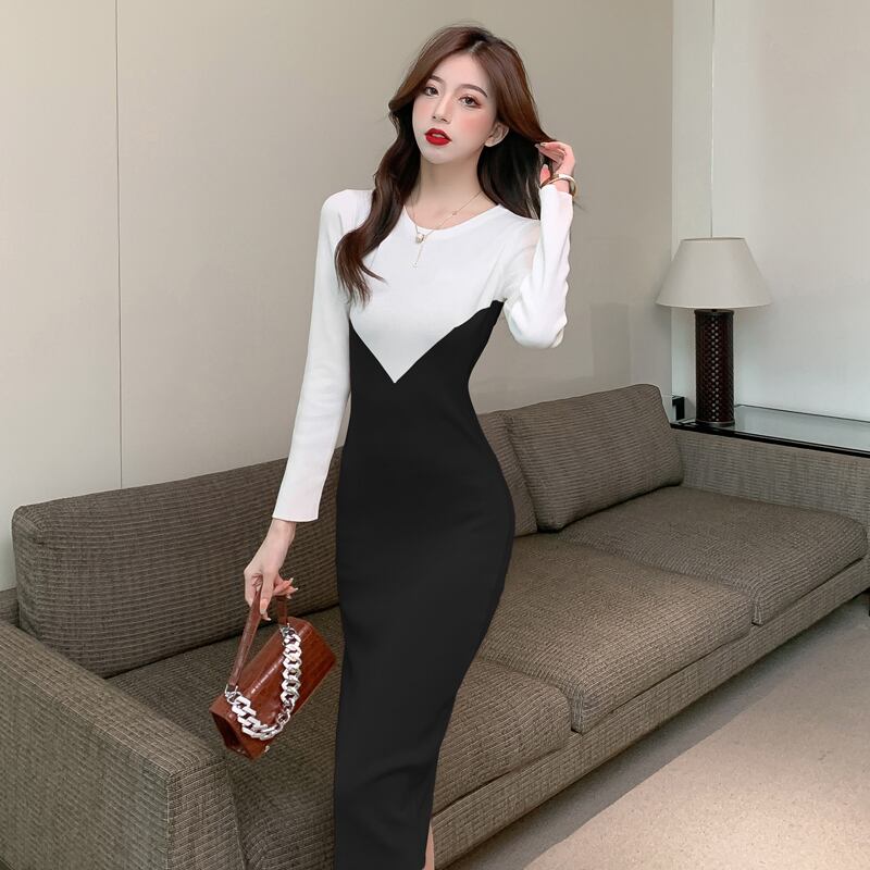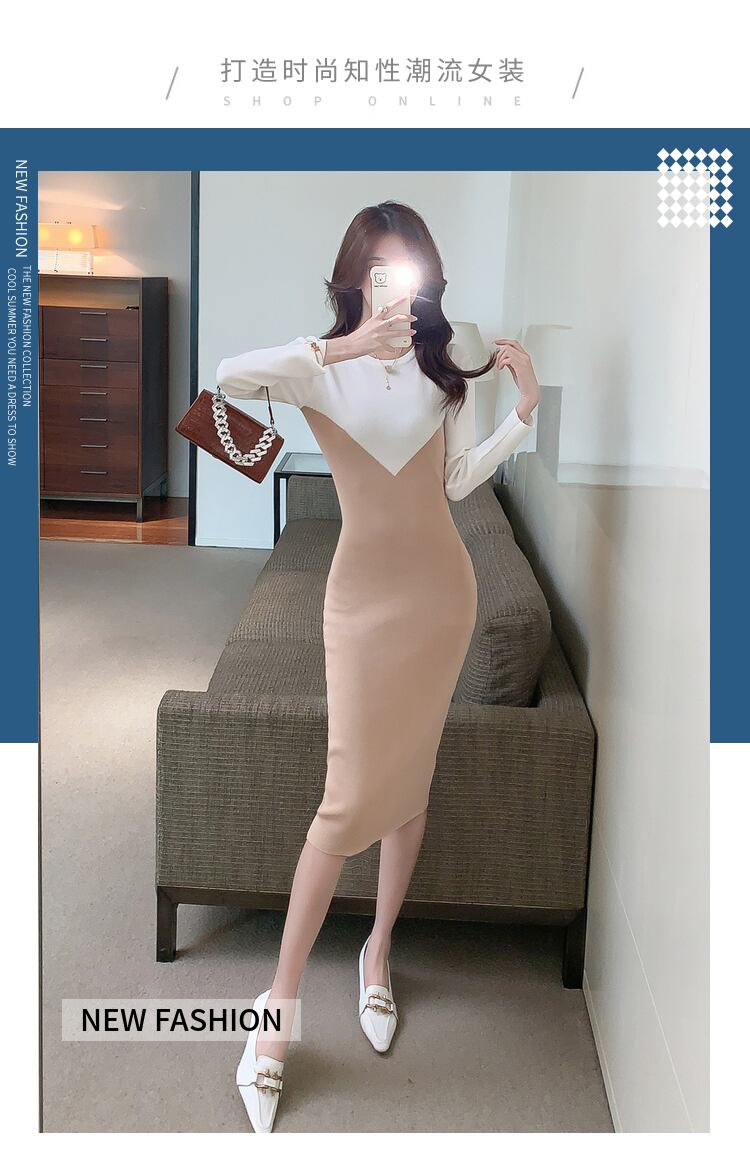 シックなデザインの編み方ロングスカートスリムスリミング気質ゆじえライトマチュアスタイルベースニットワンピース秋冬 オータム 秋物 ウィンター 冬物 yingd89306380358