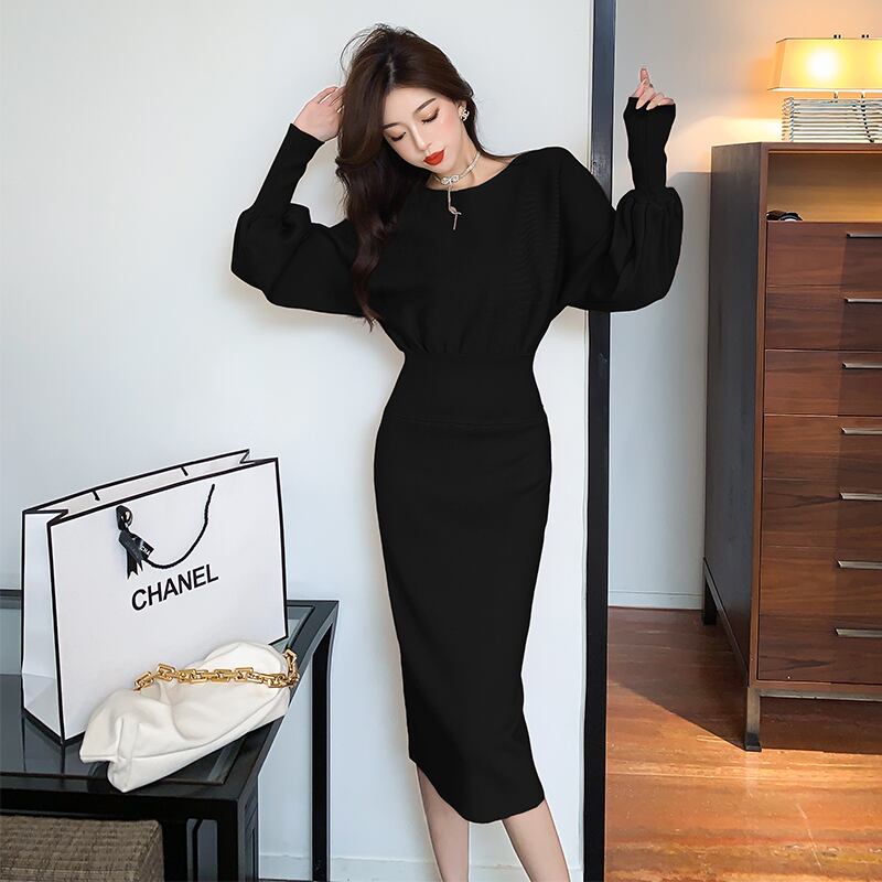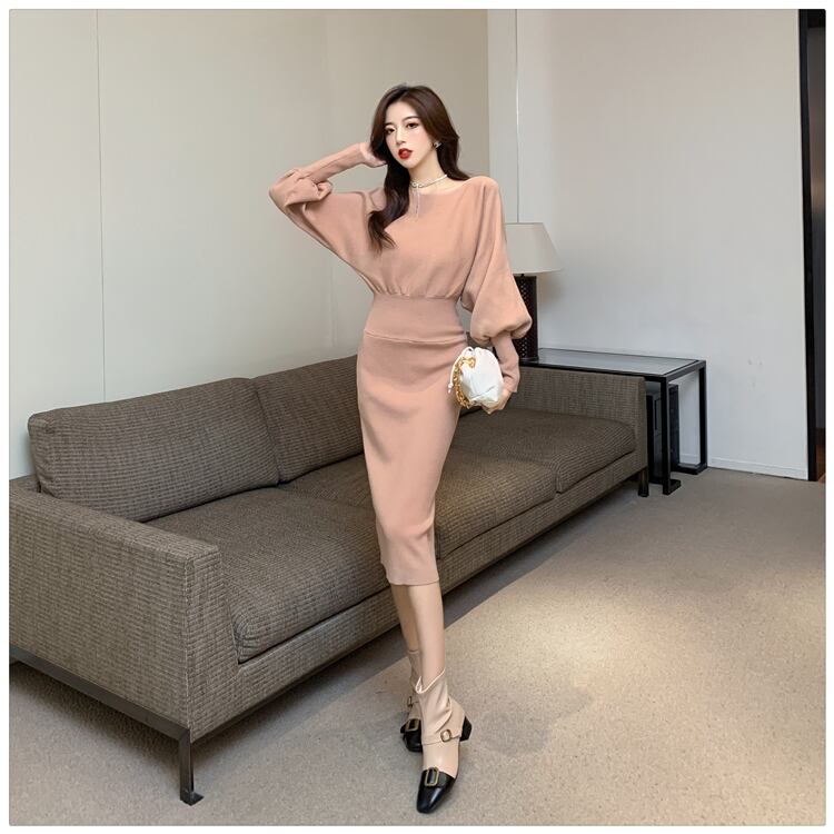 オーバーコート付きの長い膝上セータードレス、ゆるい、怠惰な風、薄い気質、ニットドレス、秋と冬の女性 ロング オータム 秋物 ウィンター 冬物 yingd17370136388