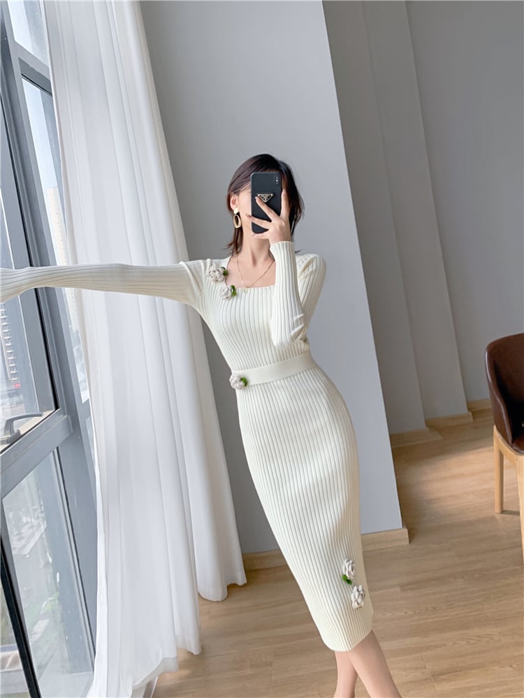 フランスのレトロなミドル丈セーターの女性はコートで秋/冬膝バッグの上にスリムなスリム化ヒップニットドレス秋/冬 ウィンター 冬物 yingd73031143205