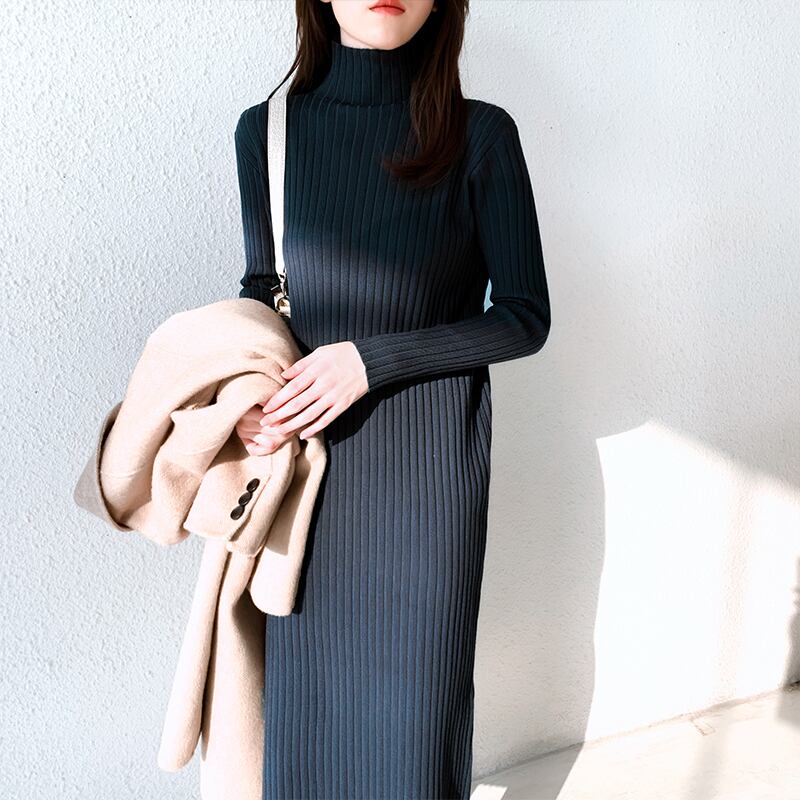 フランスのレトロなロングバージョンの膝上タートルネックセータードレススリムな痩身気質ニットインナードレス女性の秋と冬 オータム 秋物 ウィンター 冬物 yingd85136781930