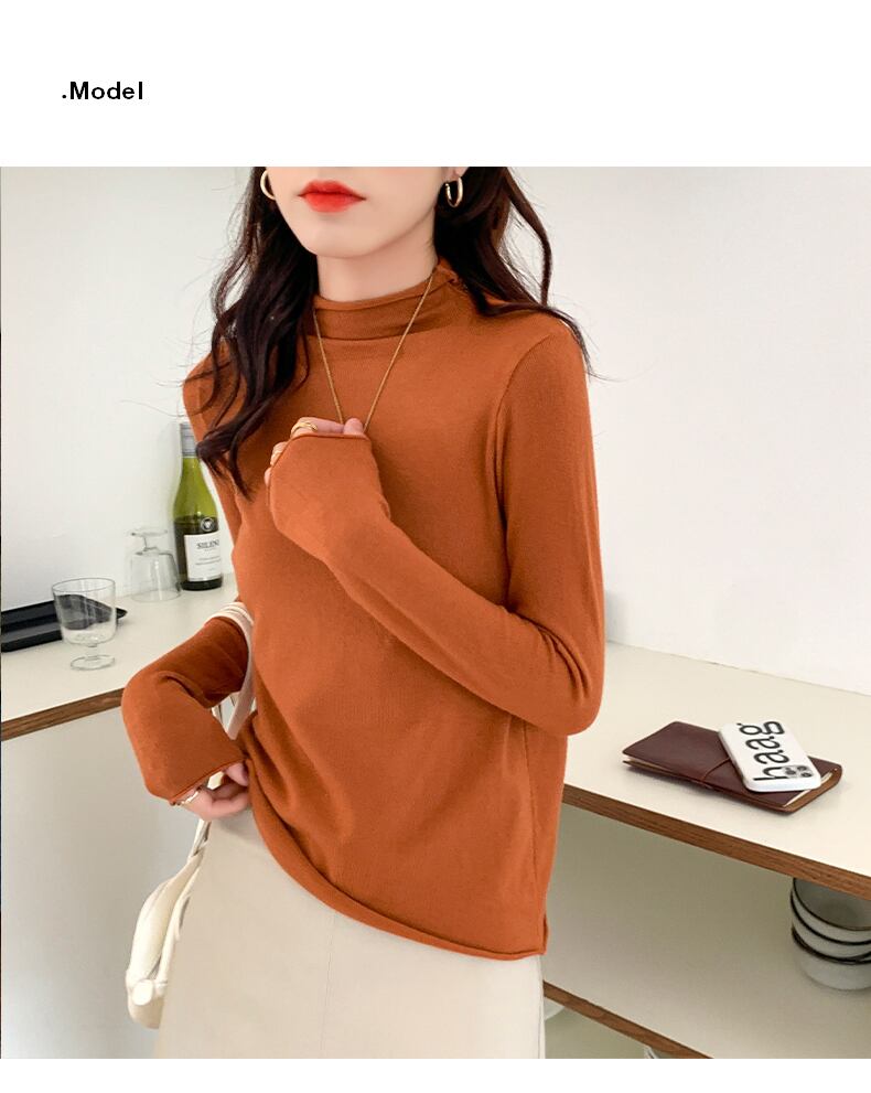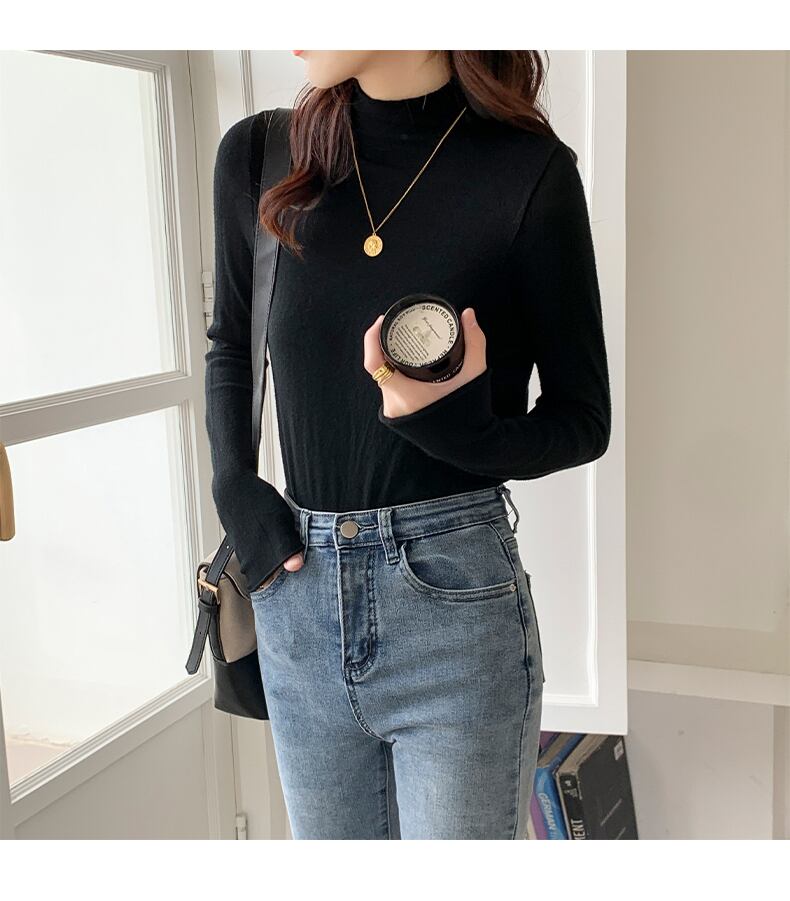 ハーフハイカラーのボトミングシャツ秋冬ウィメンズの新しいスリムで薄く、用途の広いデザインセンスブラッシュド長袖Tシャツウィメンズトップトレンド ロング ウィンター 冬物 yingd27213602775