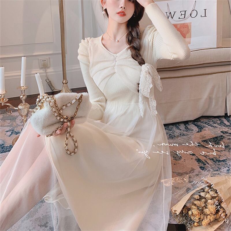 フレンチティーブレイク優しい風ニットドレス秋冬コートシックなデザインセンスロングバージョンオーバーザニーセータードレス オータム 秋物 ウィンター 冬物 yingd94117650368