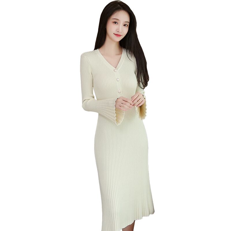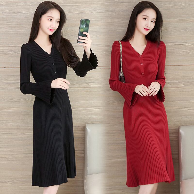 フランスのレトロなロングバージョンの膝上セータードレス秋冬のニットドレスを着たスリムな痩身気質 ウィンター 冬物 yingd12347974341