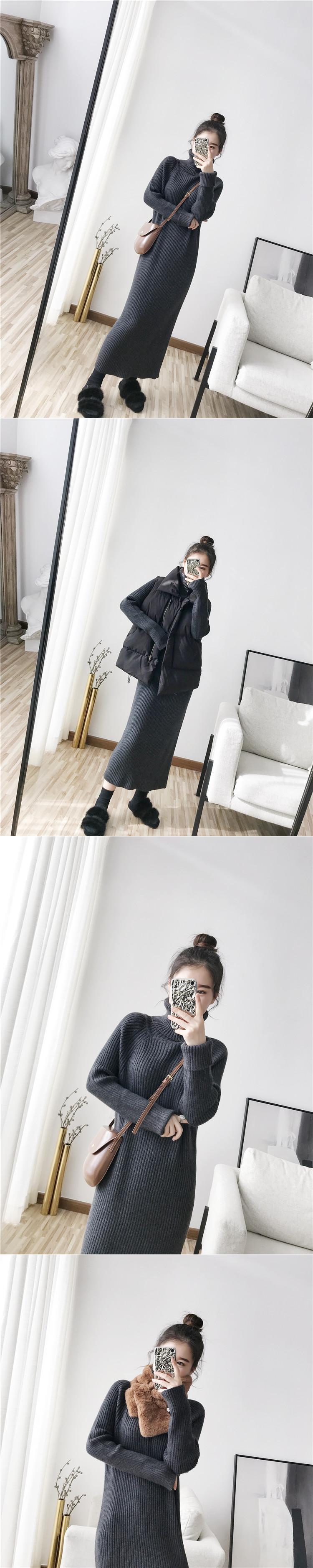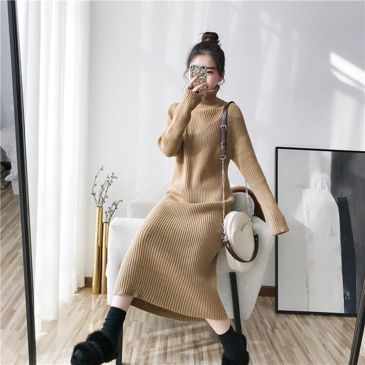 コート付きの長い膝上セータードレスはスリムで薄く、秋と冬のハイネックニットドレスの女性 ロング オータム 秋物 ウィンター 冬物 yingd25186478210