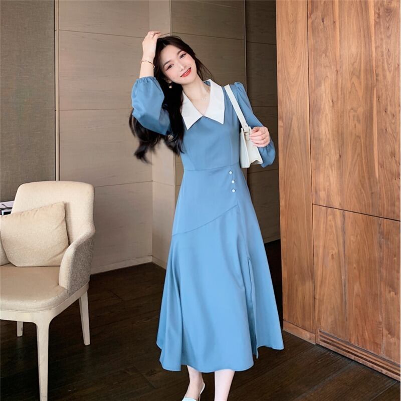フレンチレトロニッチキキョウスカートウエストは細く、気質は軽く、大人っぽいスタイルのデザインセンススプリット長袖ワンピース女性秋 ロング オータム 秋物 yingd28705342124