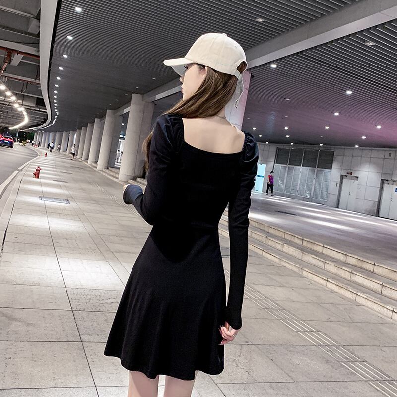 2020年秋新しい女性フレンチレトロ気質ウエスト細いAラインスカートセクシー注意マシンVネックワンピース オータム 秋物 yingd19088361514