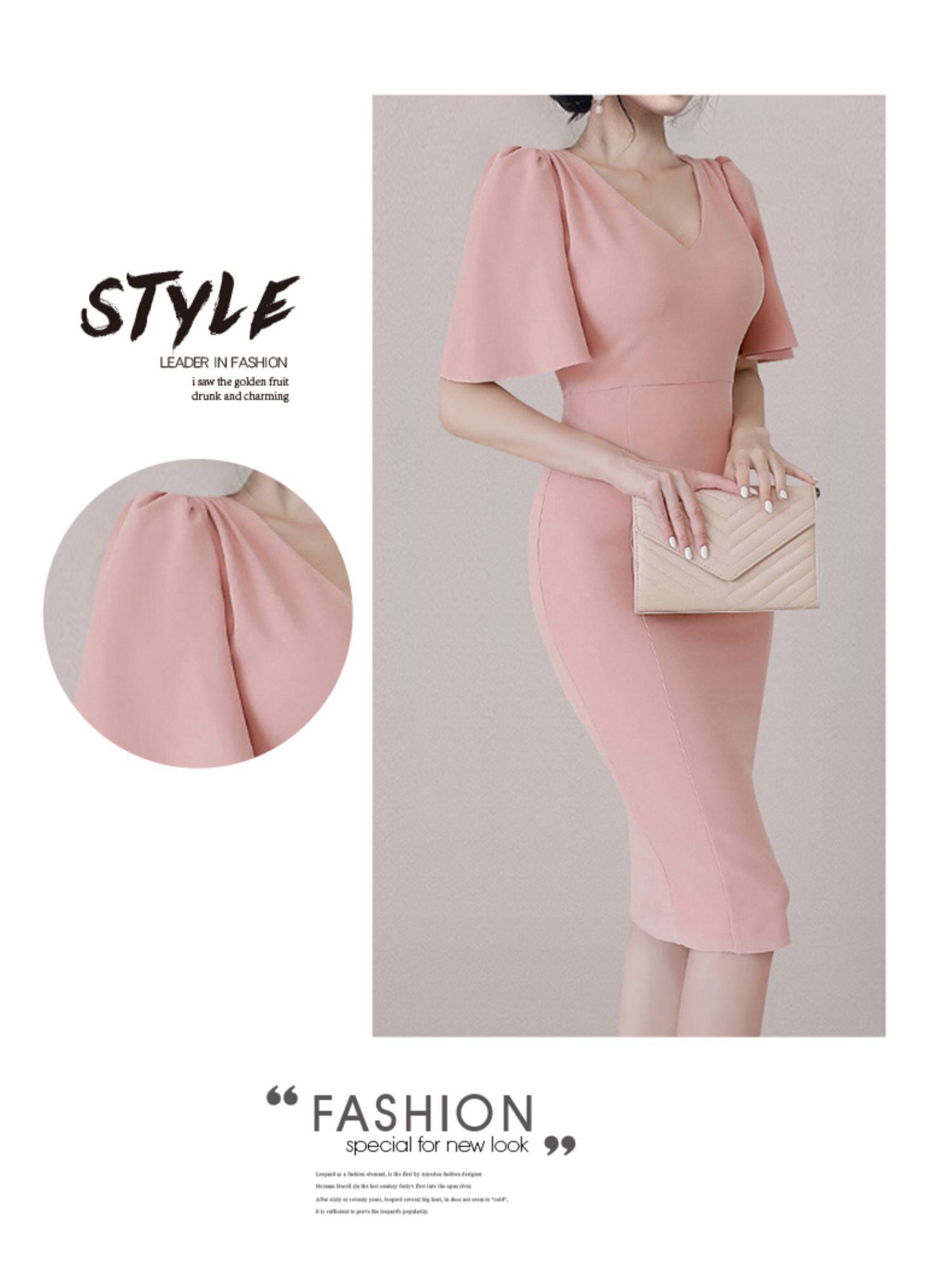 2021年夏の新しいフランスのレトロな冷風ハイエンドライトラグジュアリーレディースセクシーなVネックスリムドレス夏 サマー 夏物 yingd24198022244