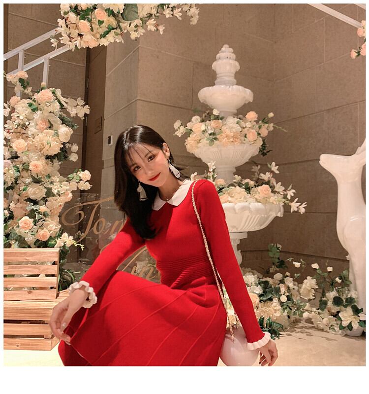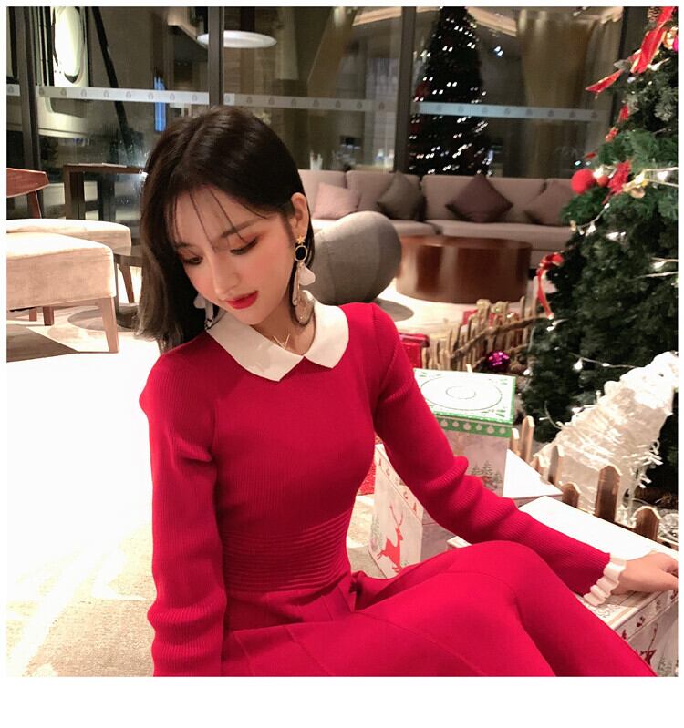 秋冬のスカート、高品質のロイヤルシスターセーター、ロングスカート、スリムフィットで薄いイヤーズシャツ、赤いニットドレス、冬のスカート レッド オータム 秋物 ウィンター 冬物 yingd83531999068