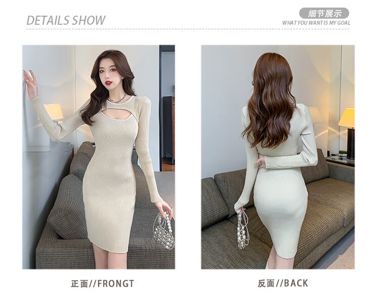 見事なスカート、上質なセーター、気質、ロイヤルシスター、ファン、丁寧な機械、くり抜き、スリムニットドレス、秋冬 オータム 秋物 ウィンター 冬物 スカート yingd17249709616