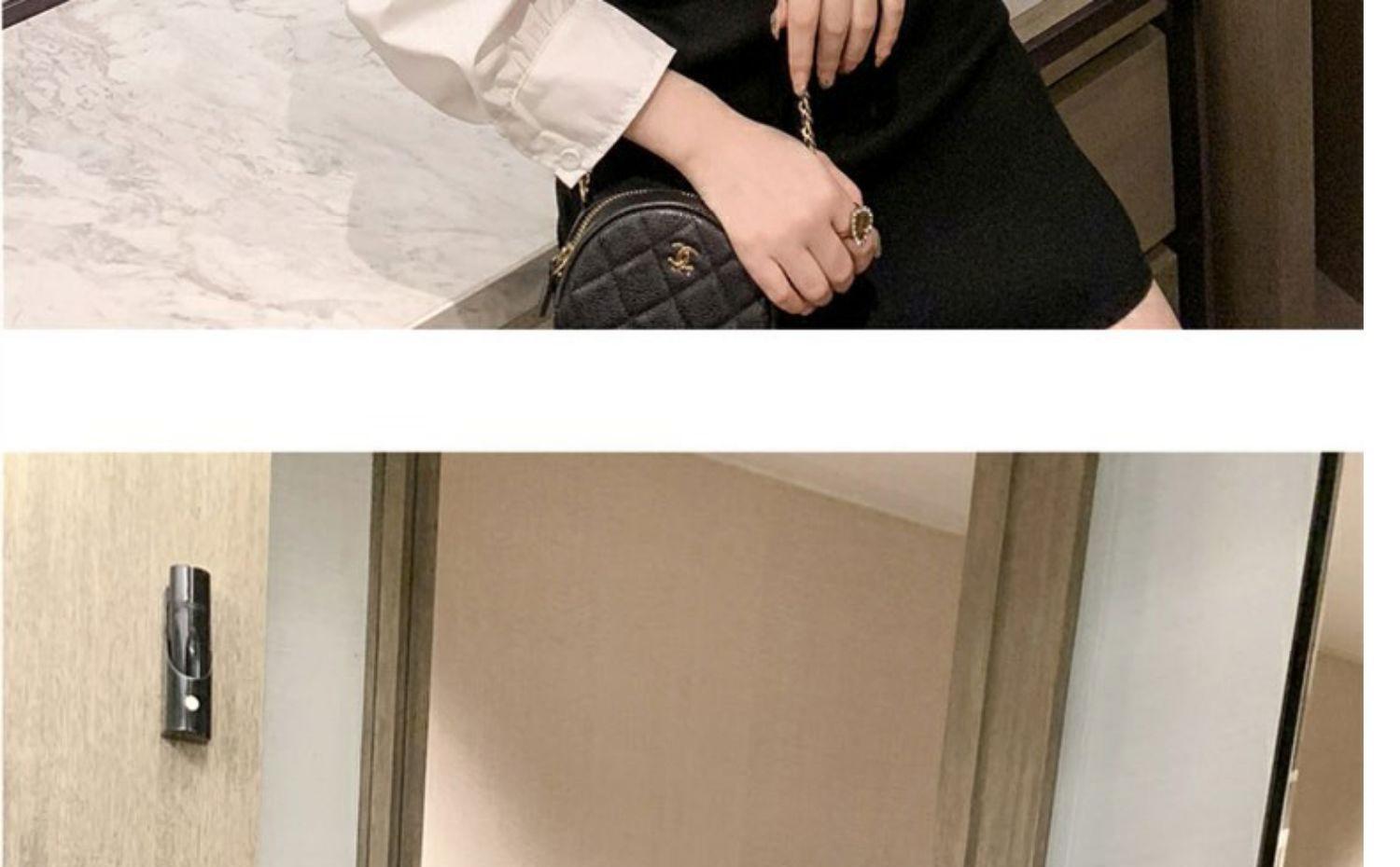 フランスのレトロなヘップバーンリトルブラックドレス2020春の新しいスタイルのパフスリーブステッチニットドレス女性ウエストスリム スプリング 春物 yingd47630494746