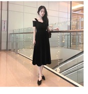 フランスのレトロなヘップバーンスタイルの小さな黒いスカート2021新しい気質ウエストスリムVネックサスペンダードレス女性の夏 ブラック サマー 夏物 yingd76928707996