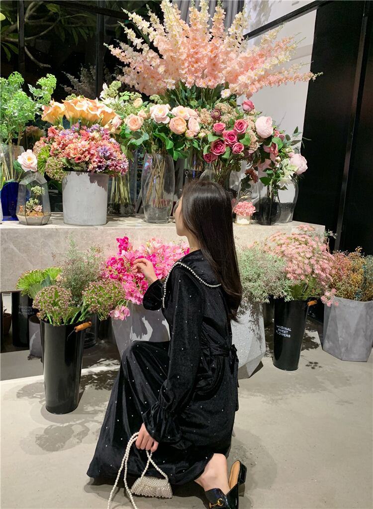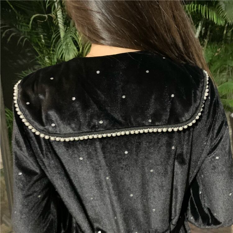 フランスのレトロなニッチミドル丈ベルベットドレス女性の秋と冬のウエストと薄い小さな黒いドレスヘップバーンドレス ブラック オータム 秋物 ウィンター 冬物 yingd36952885700