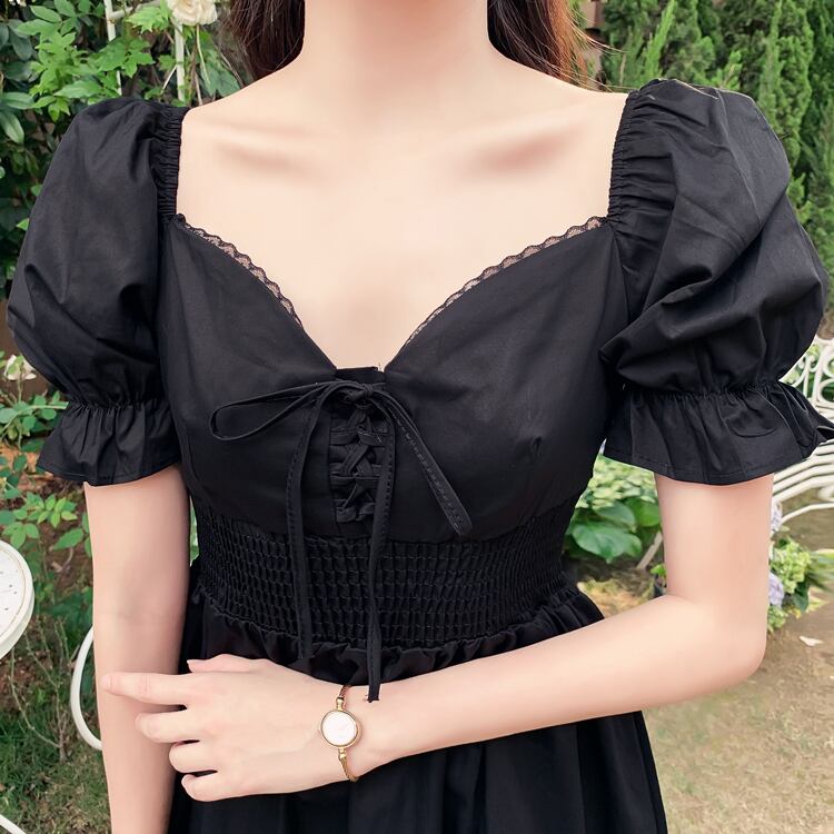 2020年夏の新しいフレンチレトロパフスリーブドレスウエストスリム気質人気ヘップバーンリトルブラックドレス サマー 夏物 yingd42605639757