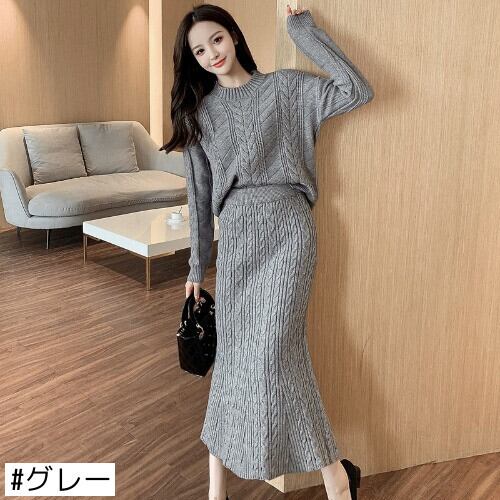 フランスのレトロな厚みのあるニットスーツの女性の秋と冬の新しい気質ロイヤルシスターライトおなじみのウィンドセータースカートツーピースセット オータム 秋物 ウィンター 冬物 yingd57552563871