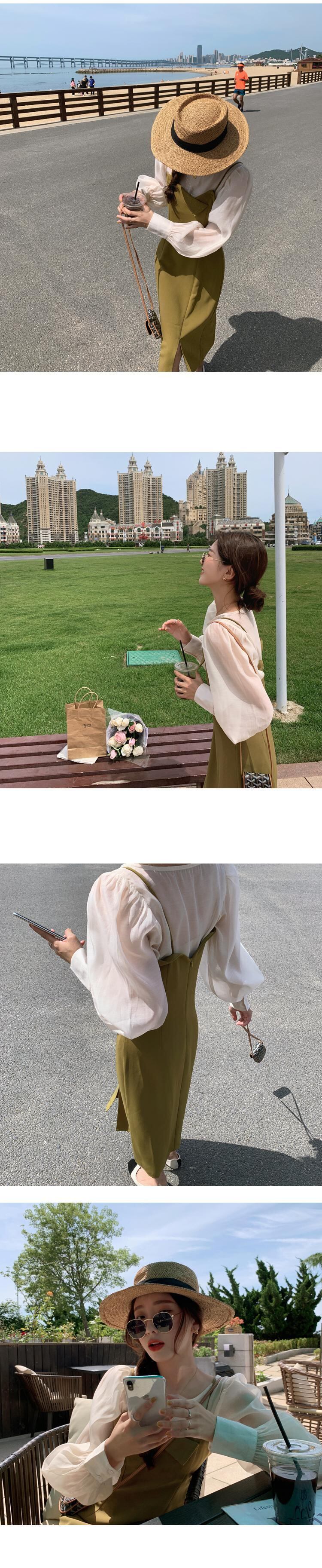 色:アプリコットトップ,トップ+サスペンダースカート,緑のドレス