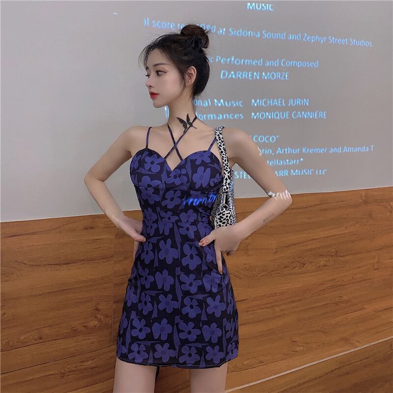 スカート2020新夏フレンチレトロニッチナローウエストと薄手の気質ショートスカートハンギングネックサスペンダードレス サマー 夏物 yingd70186820348