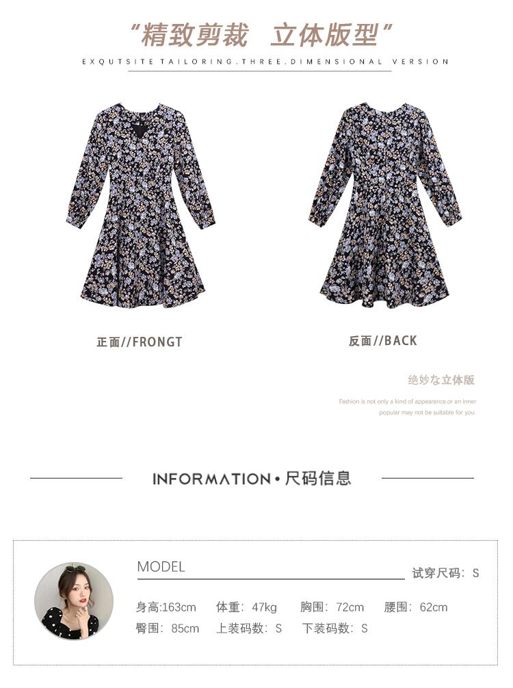ウエストと細い気質のフレンチレトロヘップバーンスタイルフローラルスカートVネック優しいスタイル長袖フローラルドレス女性 ロング 花柄 yingd37041620111