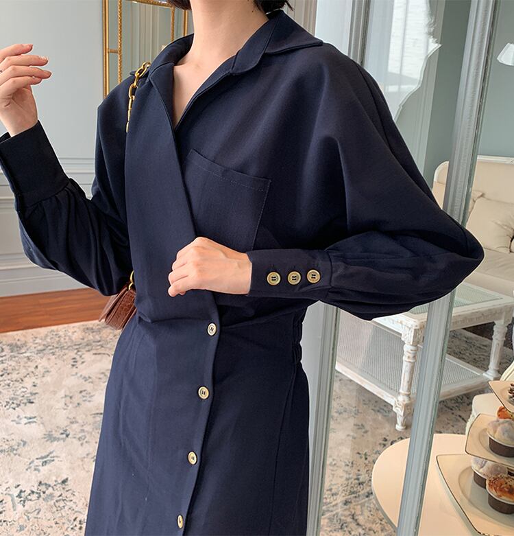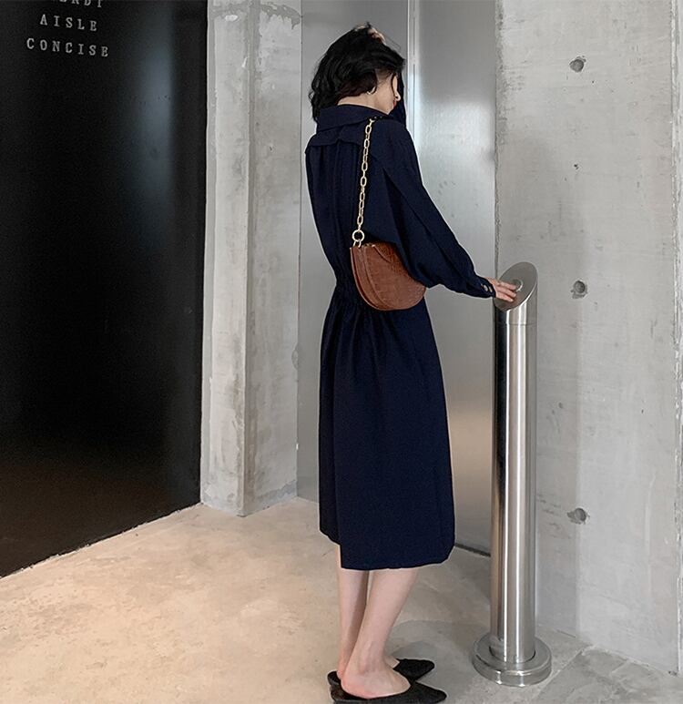 2020年秋新作レディースデザインセンスニッチミディアムロングシャツスカート気質ライトおなじみスタイル長袖ワンピースレディース オータム 秋物 yingd9613034955