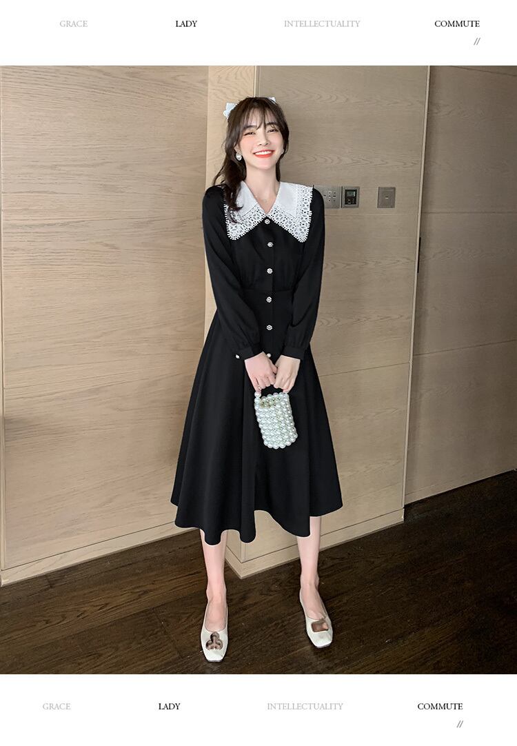 フランスのレトロなヘップバーンスタイルのロングスカートは薄くて気質の高いウエスト長袖ドレス2020初秋の新しい女性 オータム 秋物 yingd60158600283