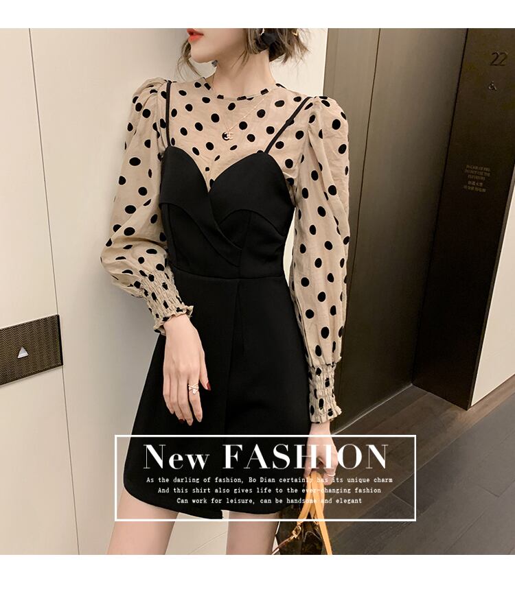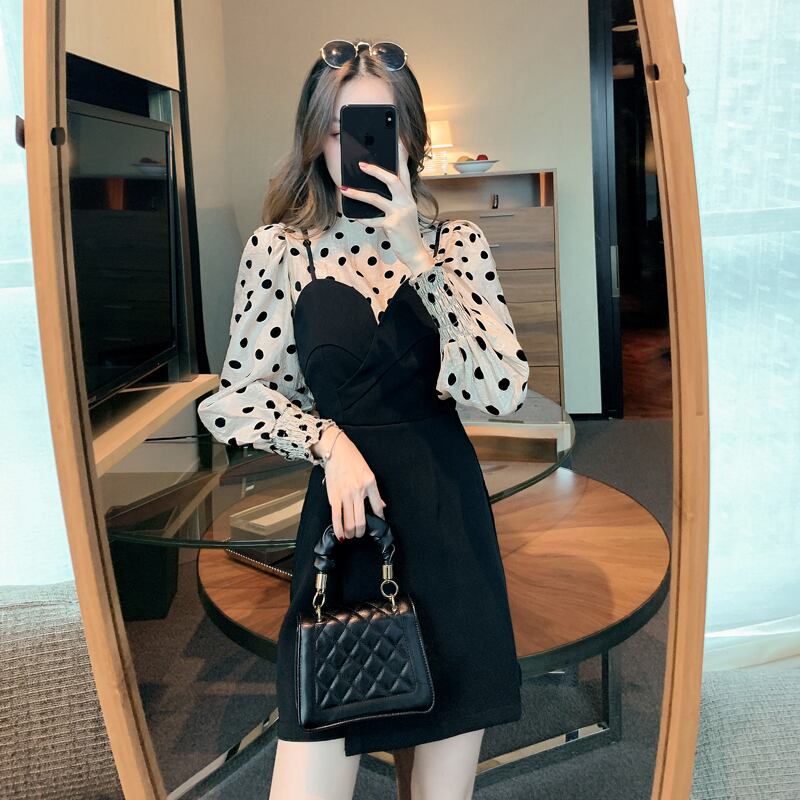 2021年春の新しいフランスのレトロな気質の女神ファンYujie水玉模様のサスペンダードレスツーピース スプリング 春物 yingd14660965528