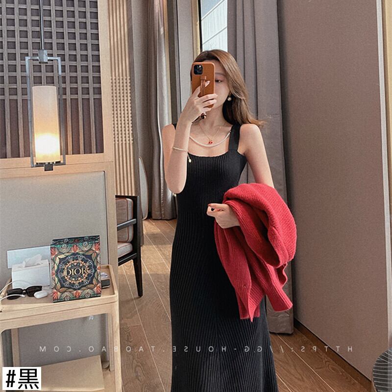 春物2021年新作レディースフレンチレトロウエストウエスト薄手の気質優しい風スクエアカラースリングニットワンピース スプリング スクウェア yingd71953622635
