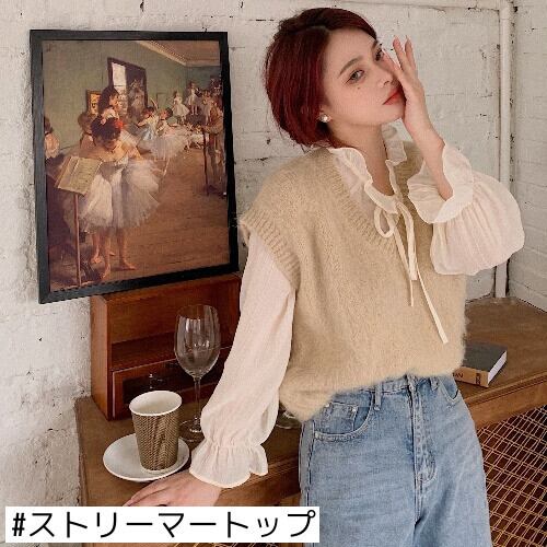 色:ストリーマートップ+ニットベスト,ニットベスト,ストリーマートップ