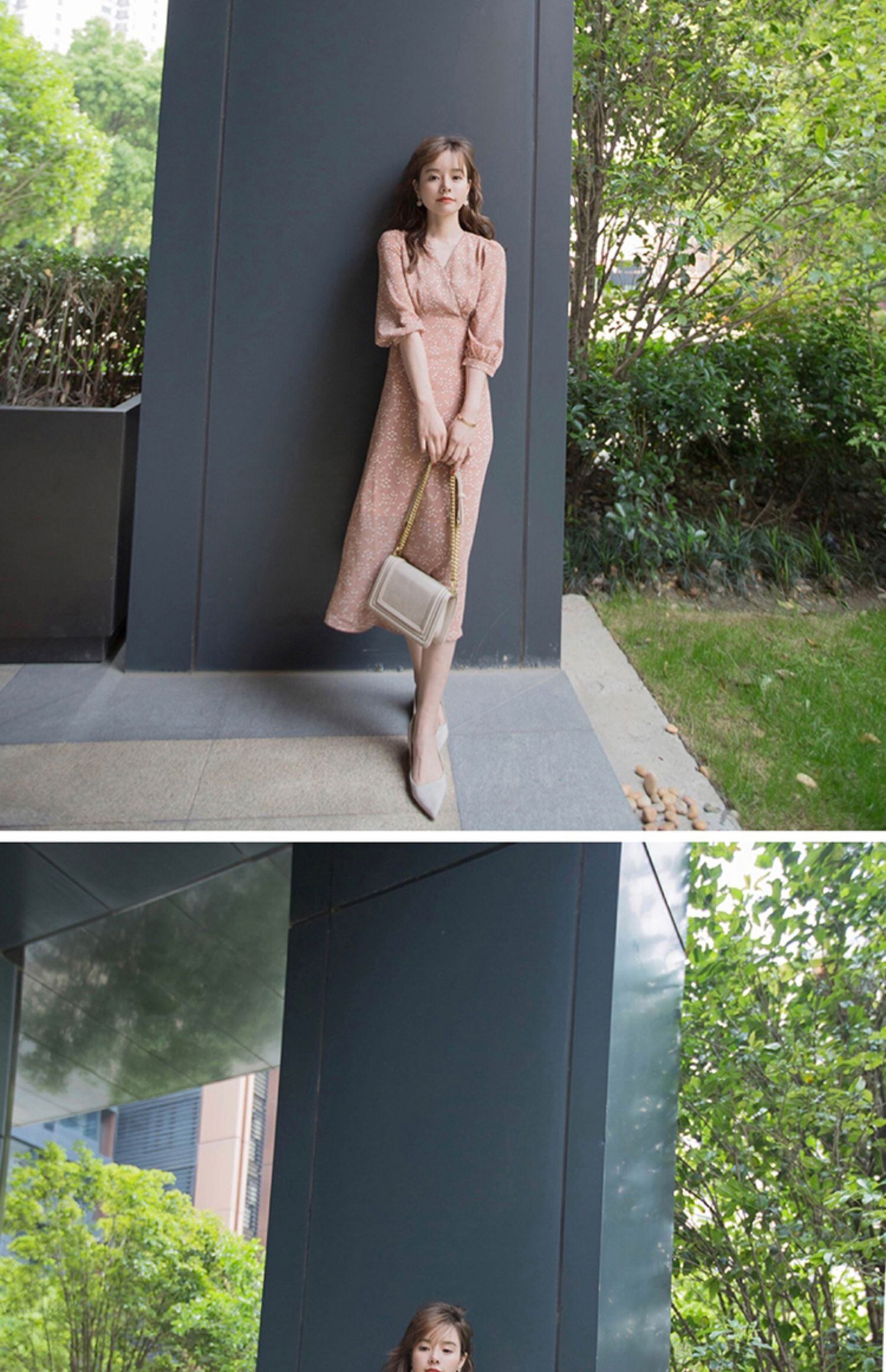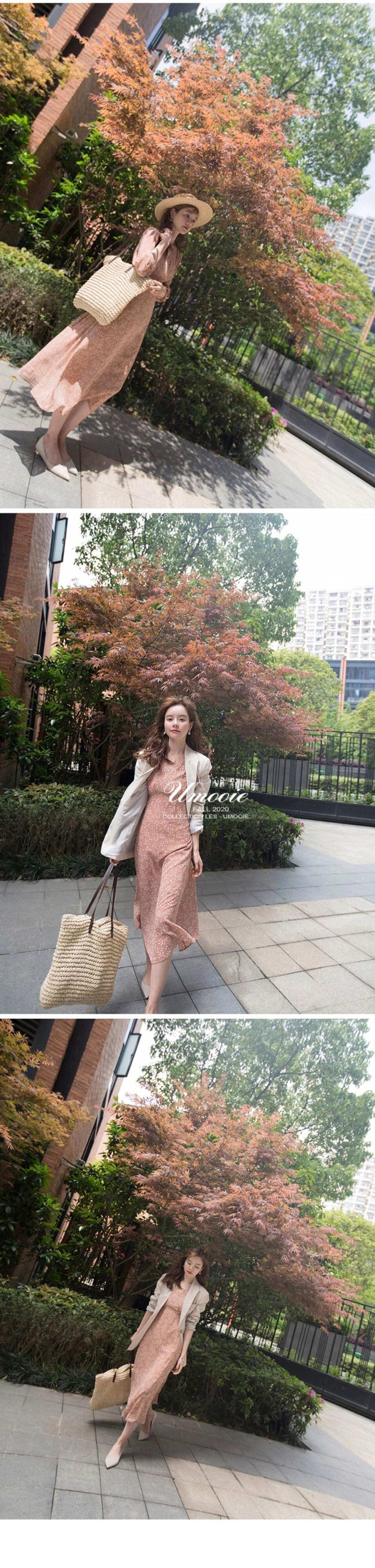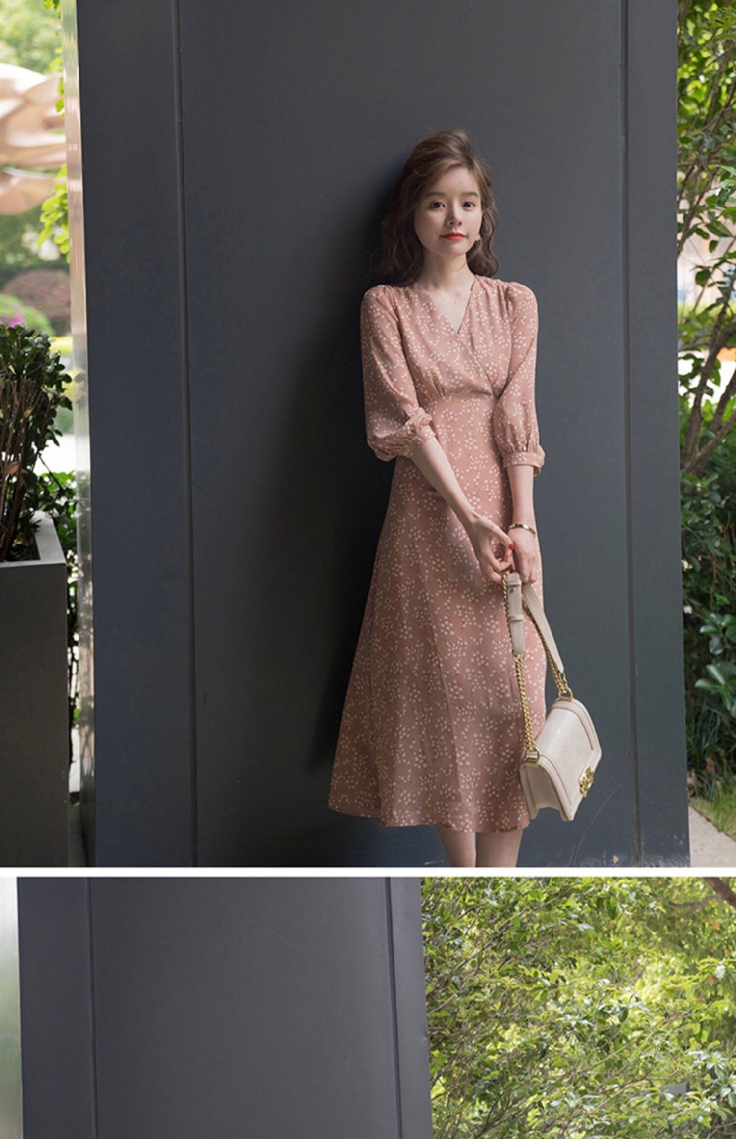 2020年初秋の新しいスタイルのウエストと薄い気質の花柄のスカート穏やかな風、塩と甘いフレンチティーブレイクドレスの女性 大人ガーリー スウィート キュート カジュアル オータム 秋物 yingd11200391372