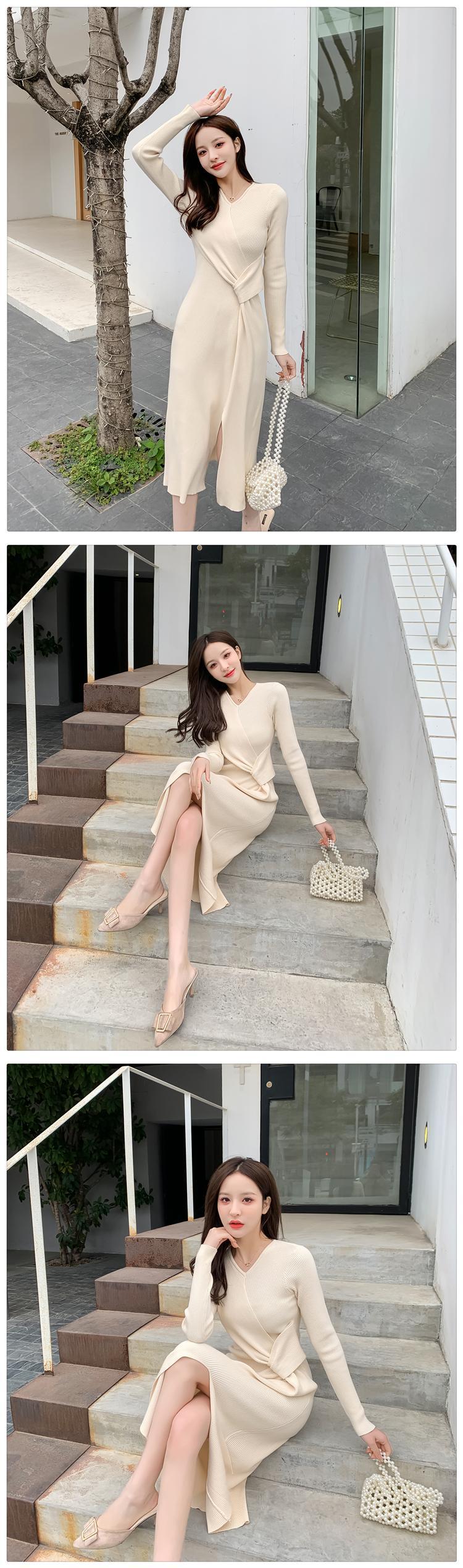 ライトラグジュアリーデザインスカート冬コートロングセータースカートオーバーニースプリットレッドニットワンピース秋冬 オータム 秋物 ウィンター 冬物 yingd80774012604