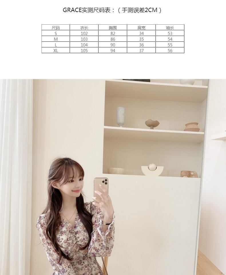 フレンチレトロ優しい風フローラルスカートウエストと細い気質Vネックミドル丈シフォンフローラルドレスレディース秋 オータム 秋物 花柄 yingd94791048121