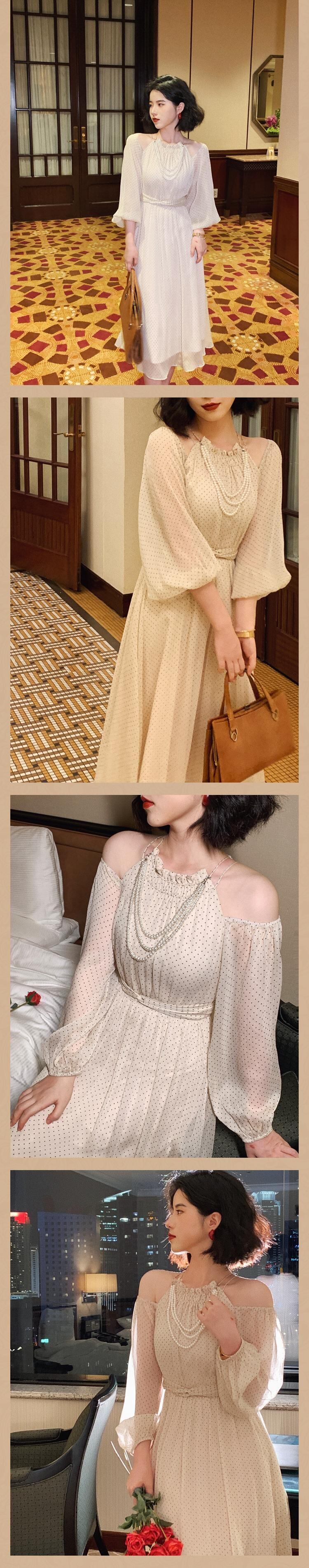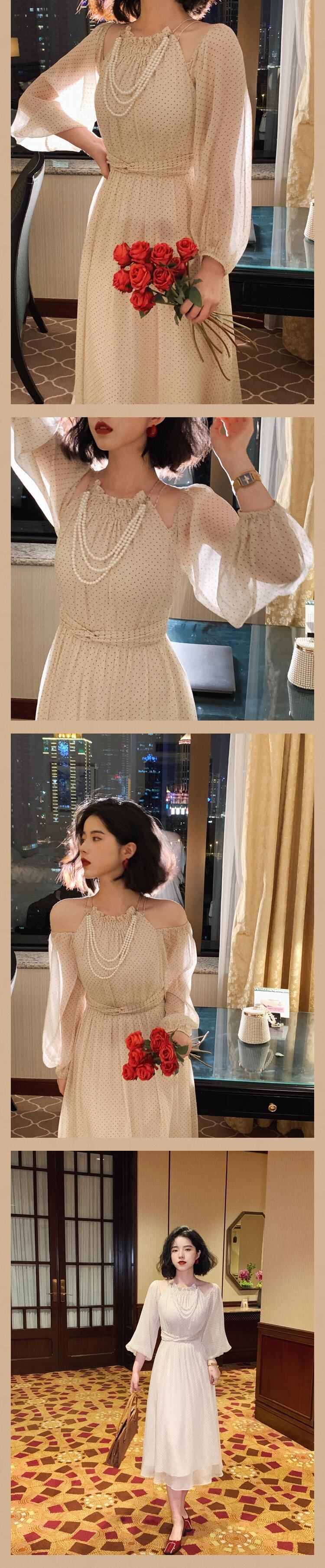 2021年初秋新婦人服気質女神ファンハイエンドライトラグジュアリーレディースデザインセンスウェーブポイントホルタードレス オータム 秋物 yingd1707201288