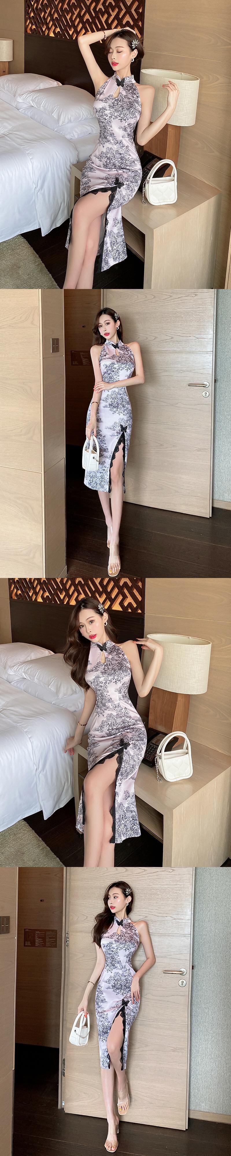 冷風女性の高級感高級レディースデザイン自己啓発感セクシースリット改良チャイナドレス女性夏 サマー 夏物 yingd81672720229