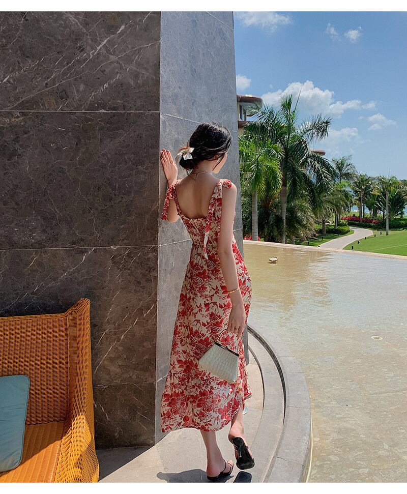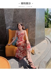 フランスのレトロな優しいスタイルのセクシーな花柄のサスペンダードレス女性の夏のデザイン小さな外着サスペンダーロングスカート サマー 夏物 yingd95049757937