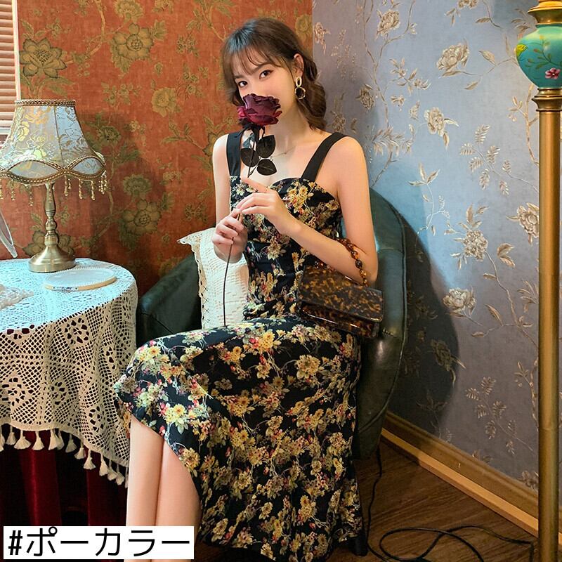 フランスのニッチな膝上サスペンダードレス高級婦人服の女神ファンガオディングライトラグジュアリーフローラルサスペンダードレス夏 サマー 夏物 花柄 yingd4154062623
