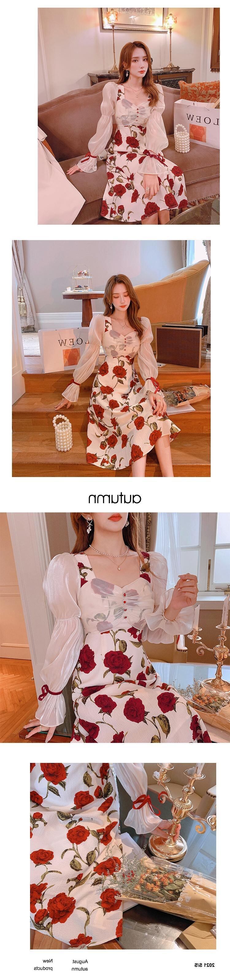 春物2022年新作冷風婦人服ハイエンドライトラグジュアリーレディース優しい風スクエアカラーローズドレスレディース スプリング スクウェア yingd18809035568