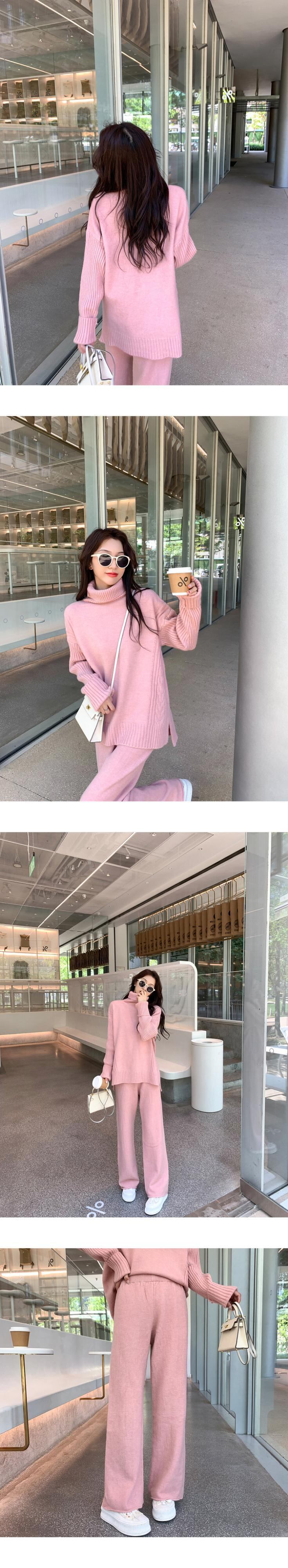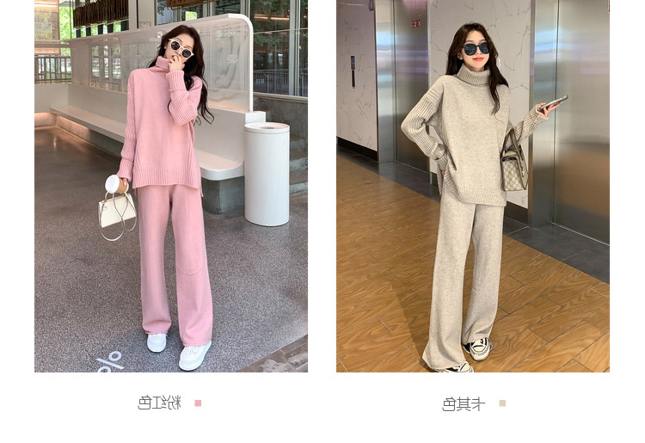 ニットスーツレディース2021年秋冬新作香港スタイルレトロシックファッションタートルネックセーターワイドレッグパンツツーピースセット オータム 秋物 ウィンター 冬物 yingd20427688737